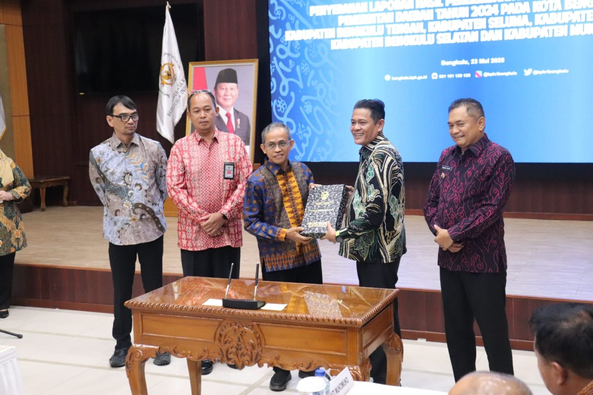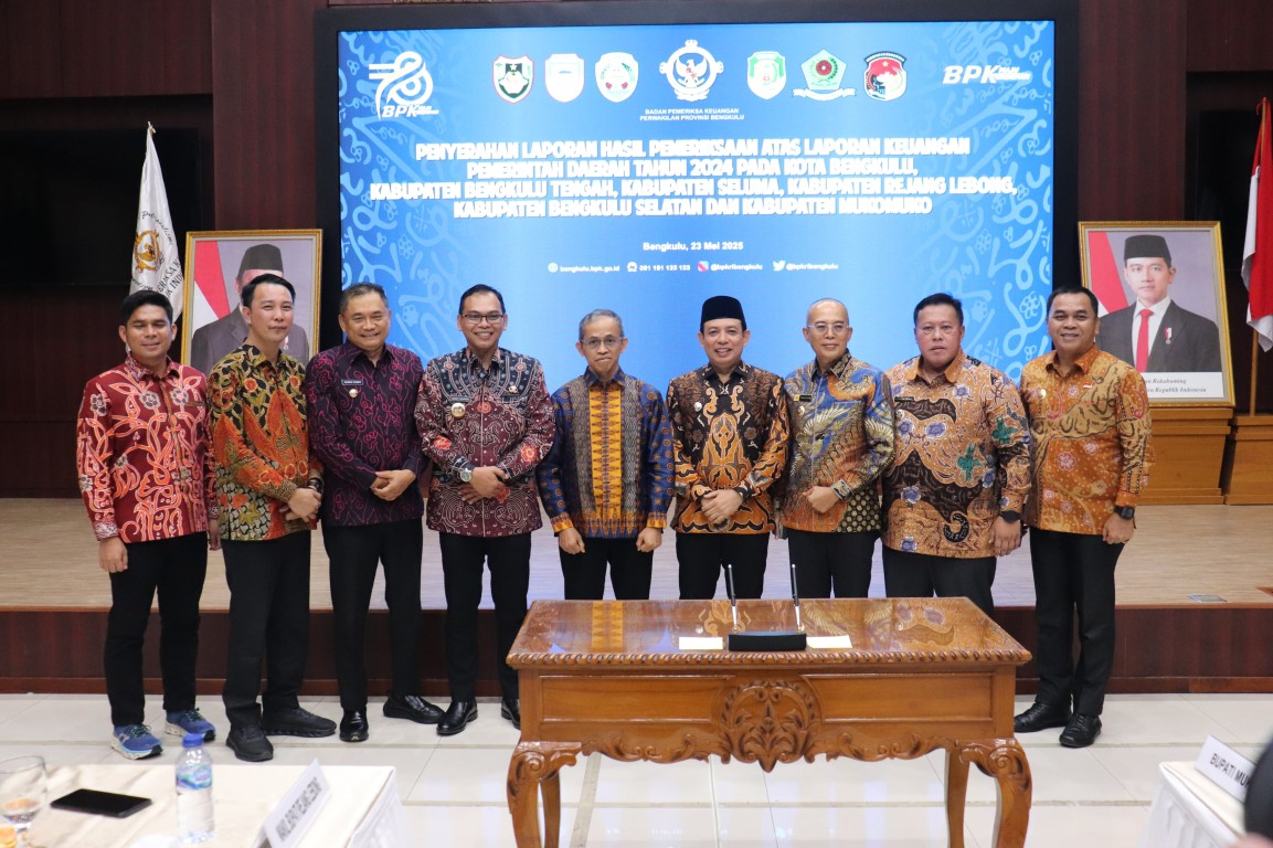 Kota Bengkulu – Pemerintah Kabupaten Bengkulu TengahPemkab Bengkulu Tengah berhasil mempertahankan Opini Wajar Tanpa Pengecualian (WTP) dari Badan Pemeriksa Keuangan (BPK) atas Laporan Keuangan Pemerintah Daerah (LKPD) Tahun Anggaran 2024. Penyerahan penghargaan dilakukan pada Jumat (23/5/2025) di Kantor BPK Perwakilan Provinsi Bengkulu. Opini WTP ini diserahkan langsung oleh Kepala BPK Perwakilan Provinsi Bengkulu, Arif Agus, kepada Bupati Bengkulu Tengah, Drs. Rachmat Riyanto, S.T., M.A.P., yang didampingi oleh Wakil Bupati Bengkulu Tengah Tarmizi, S.Sos. dan Ketua DPRD Bengkulu Tengah Fepi Suheri, S.IP. Turut hadir Sekda Bengkulu Tengah, Inspektur Daerah Bengkulu Tengah Welldo Kurniyanto, S.E., M.M., CGCAE., CfrA dan Kepala Badan Kuangan Daerah (BKD) Bengkulu Tengah.