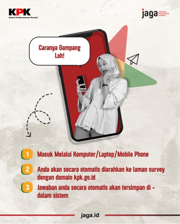 "Identitas dan kerahasiaan jawaban responden dilindungi oleh KPK. Responden yang terpilih juga akan mendapatkan merchandise KPK yang keren dan menarik," kata Wahyu.